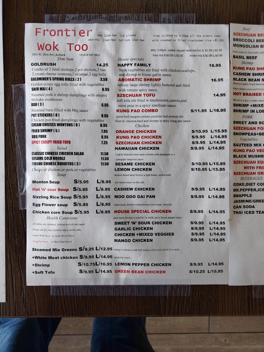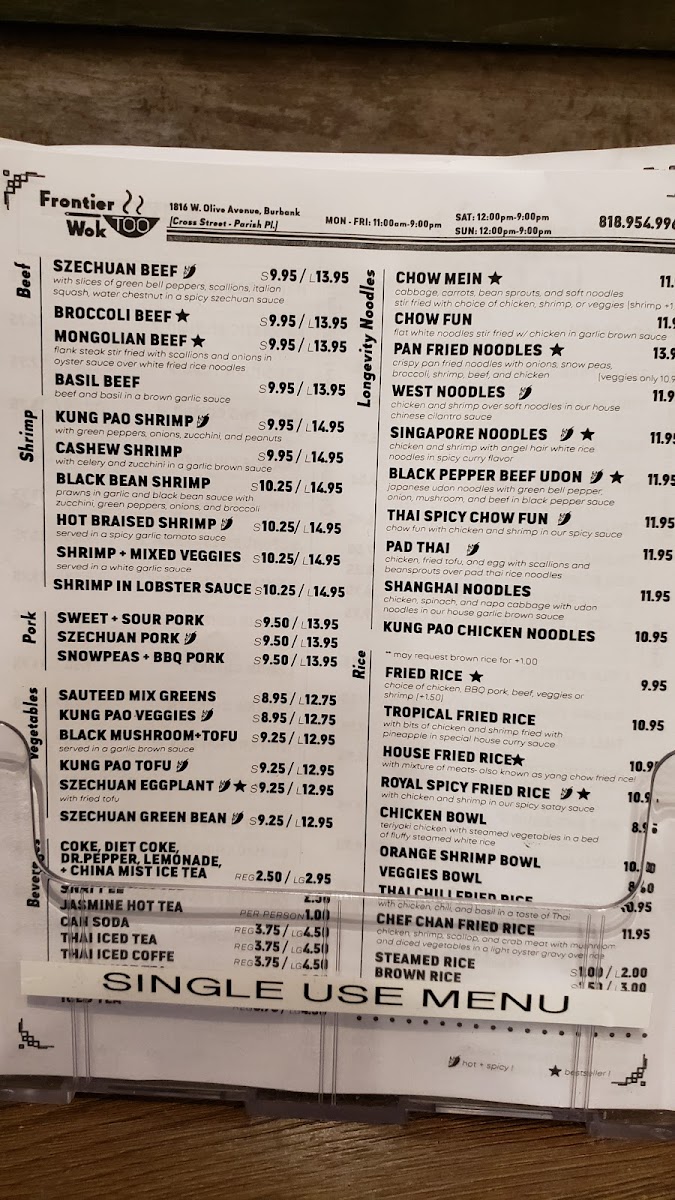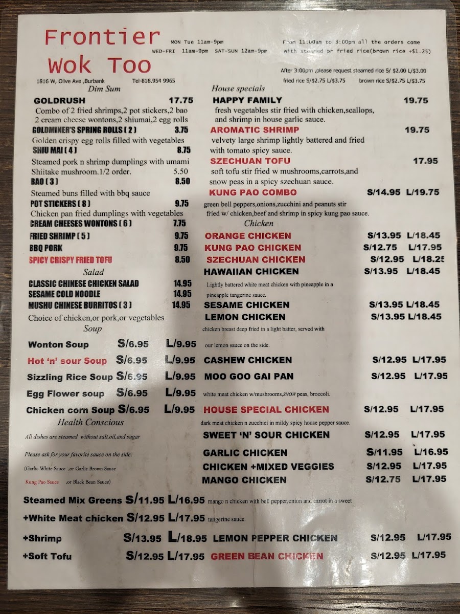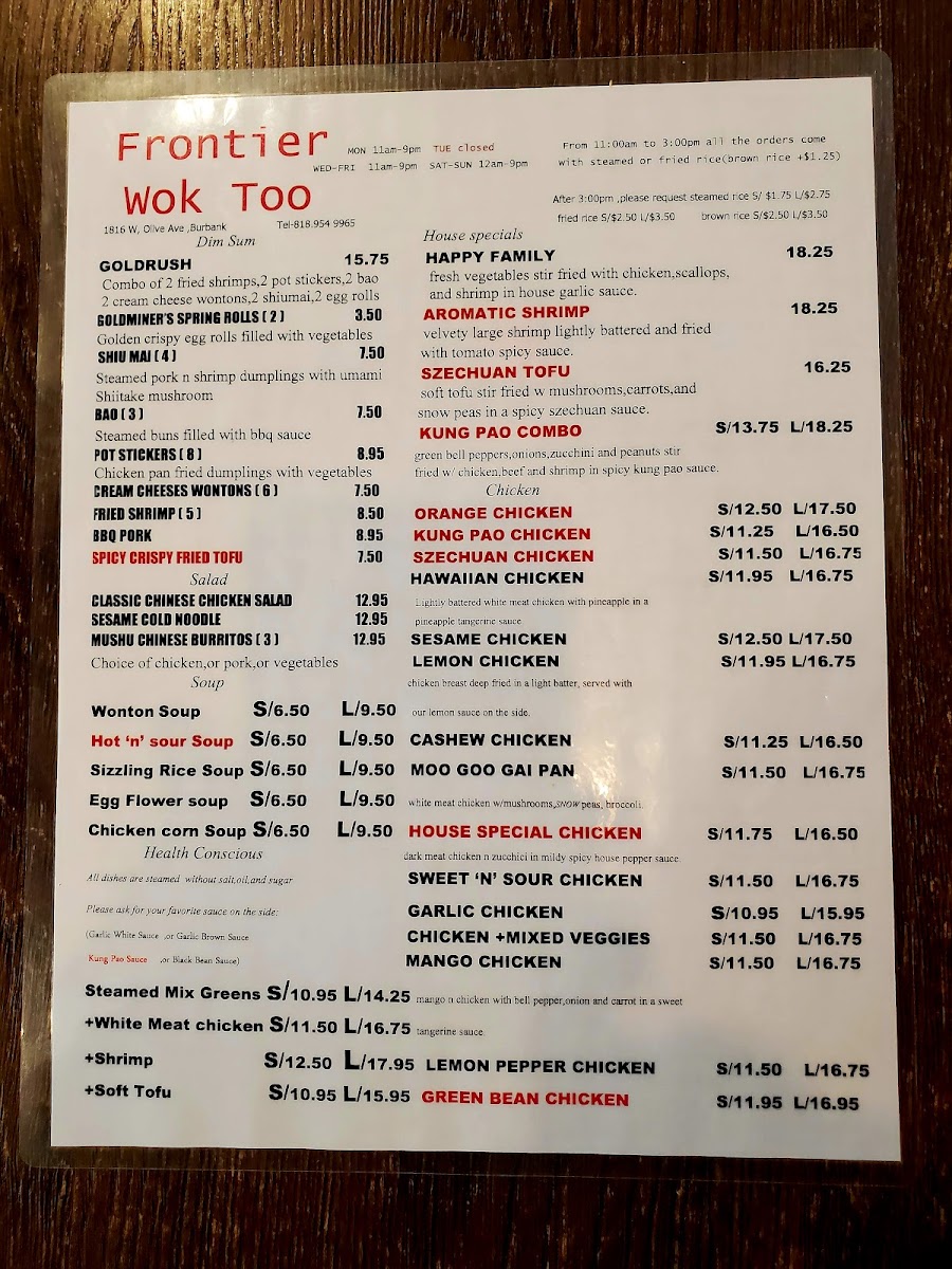 Frontier Wok Too Menu